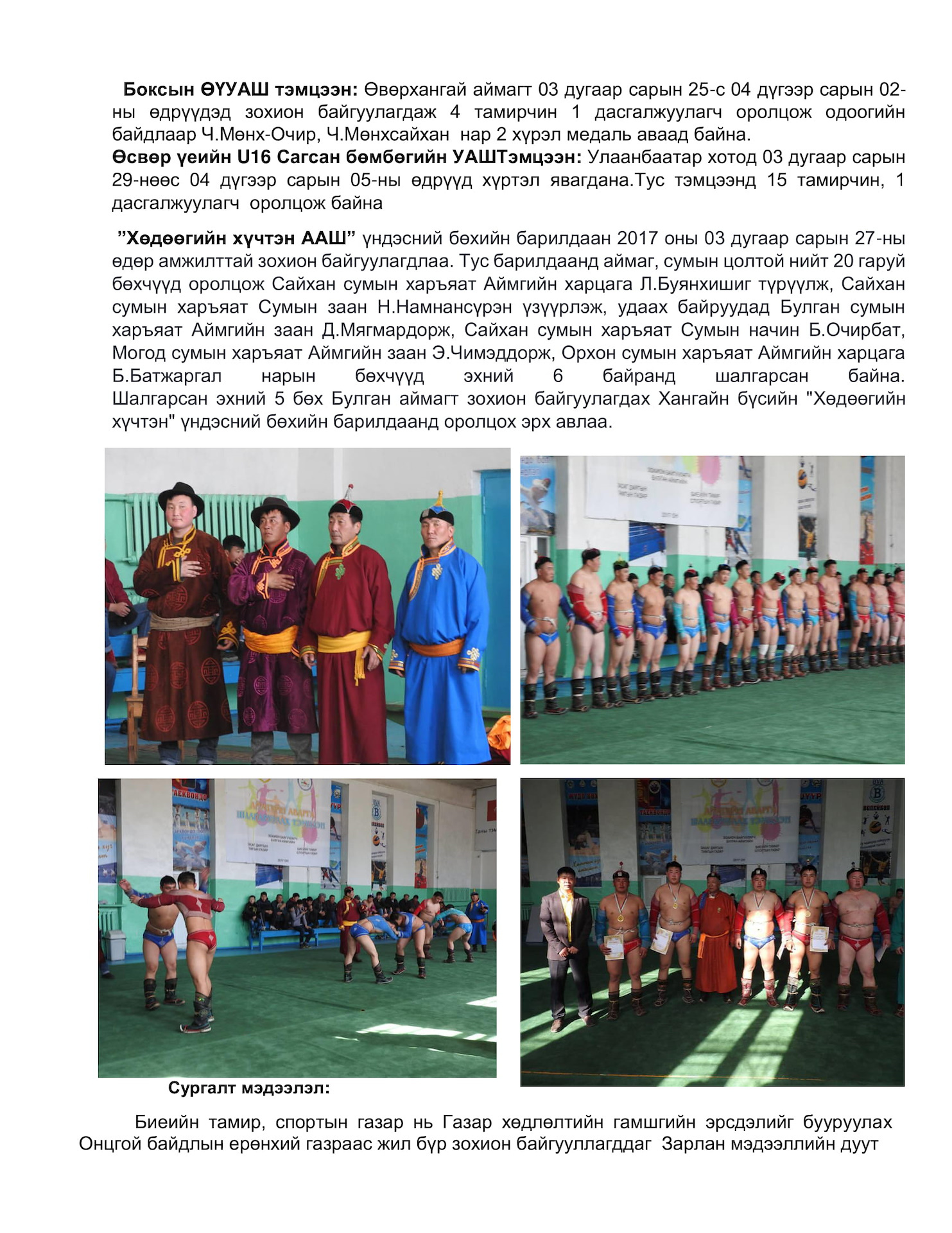 2017 оны 3 сарын Улс, бүс, аймгийн аварга шалгаруулах уралдаан тэмцээн