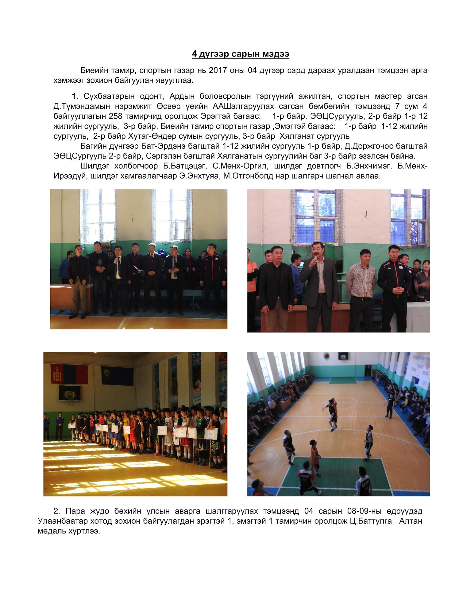 2017 оны 4 сарын Улс, бүс, аймгийн аварга шалгаруулах уралдаан тэмцээн