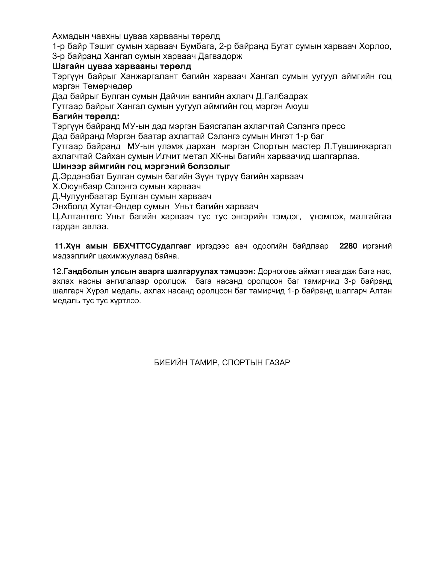 СПОРТЫН МЭДЭЭ