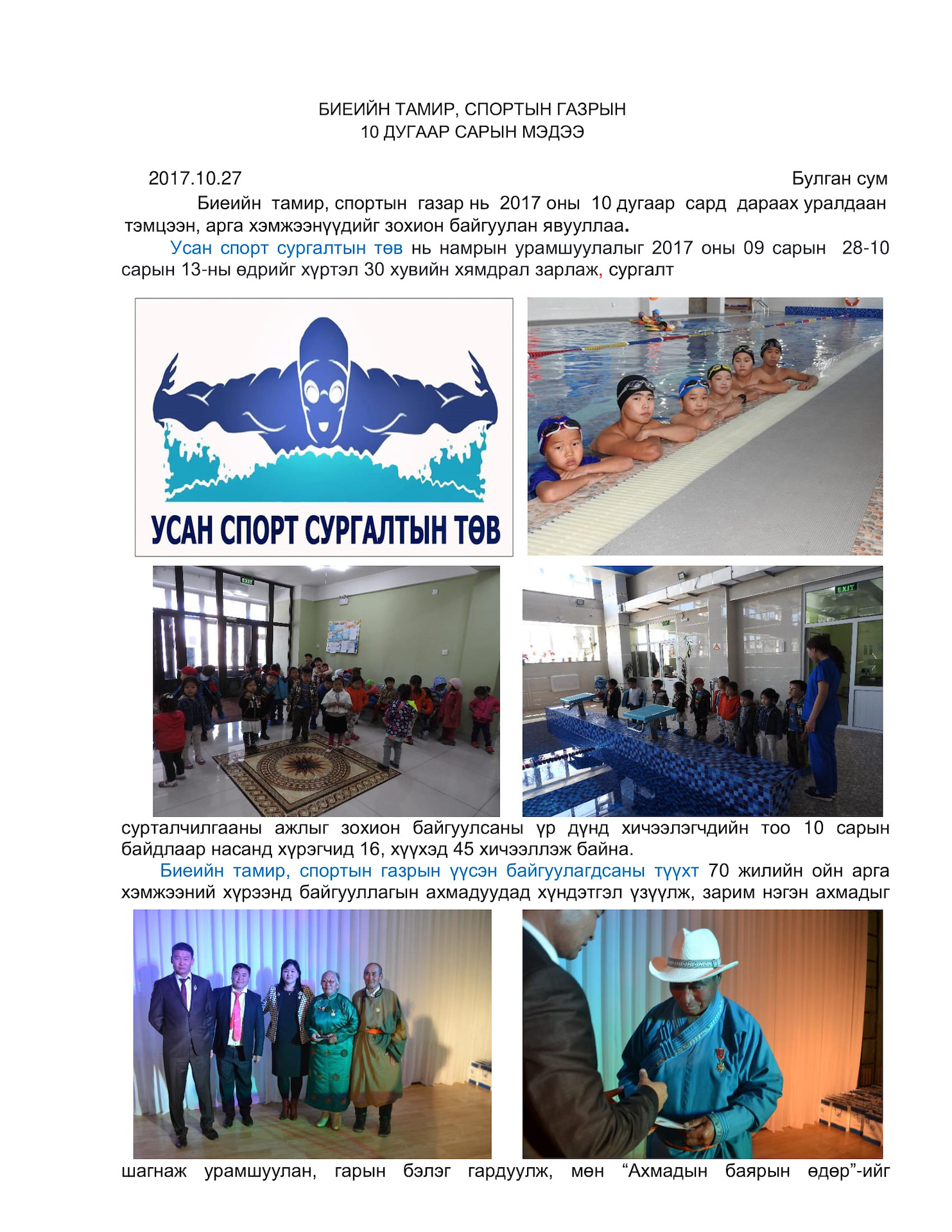 2017 оны 10 сарын Улс, бүс, аймгийн аварга шалгаруулах уралдаан тэмцээн