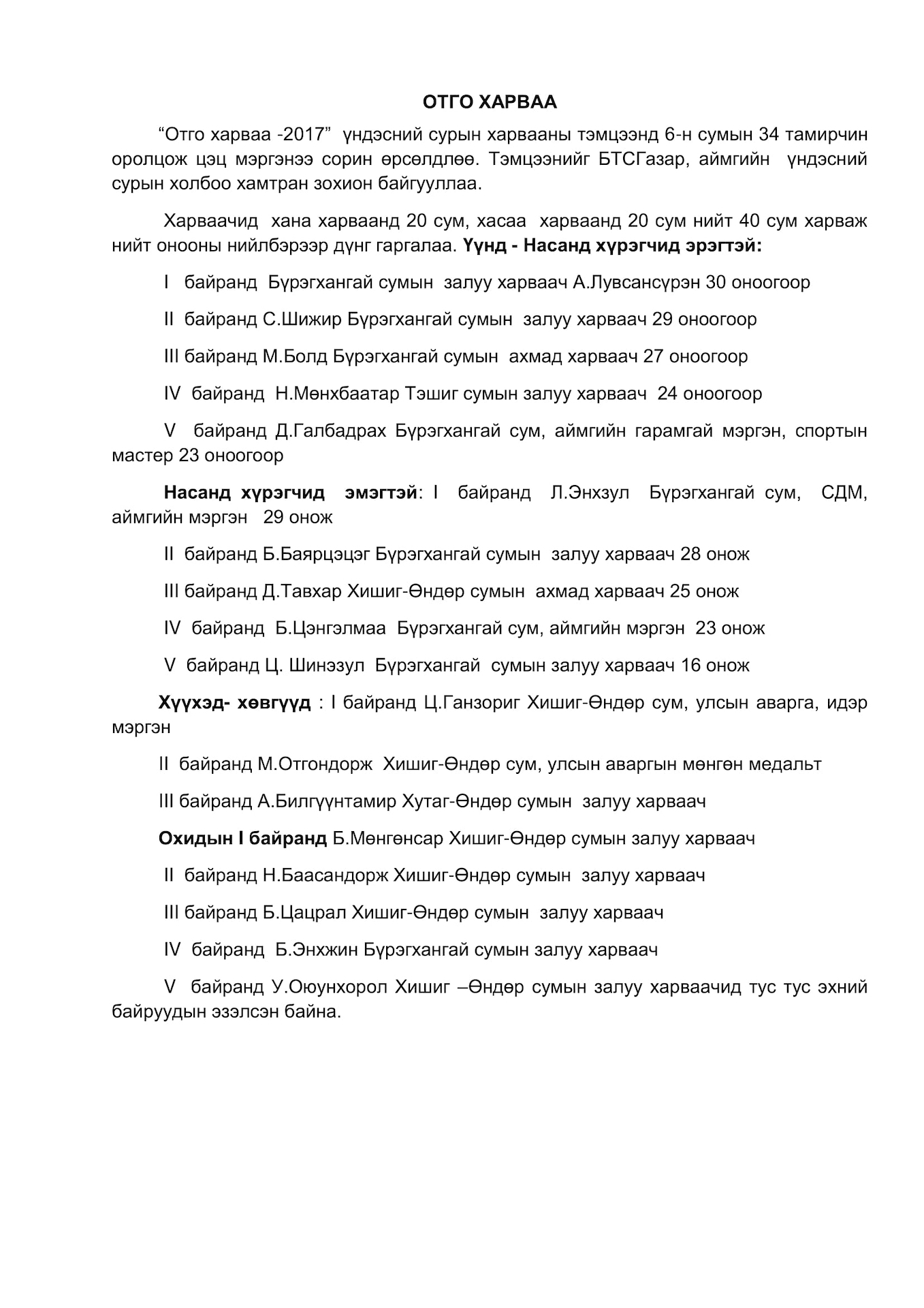 2017 оны Улс, бүс, аймгийн аварга шалгаруулах уралдаан тэмцээн